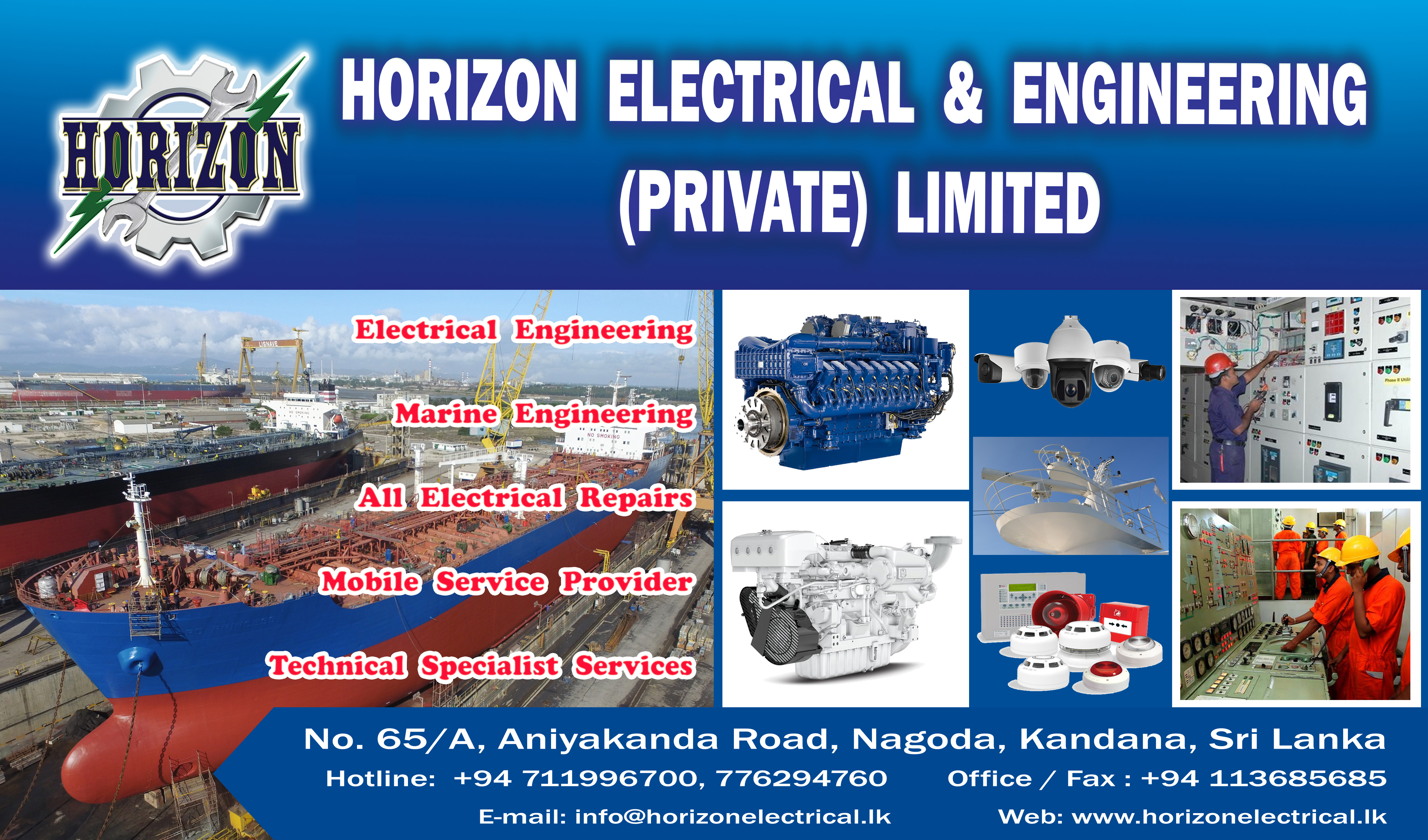 In line with our Core Values and Vision, Horizon Electrical & Engineering (Pvt) Ltd will be the provider of choice dedicated to quality electrical and Management solutions, solving problems, designing products, supplying products and services to the marine, industrial and construction industries. This will be achieved by: