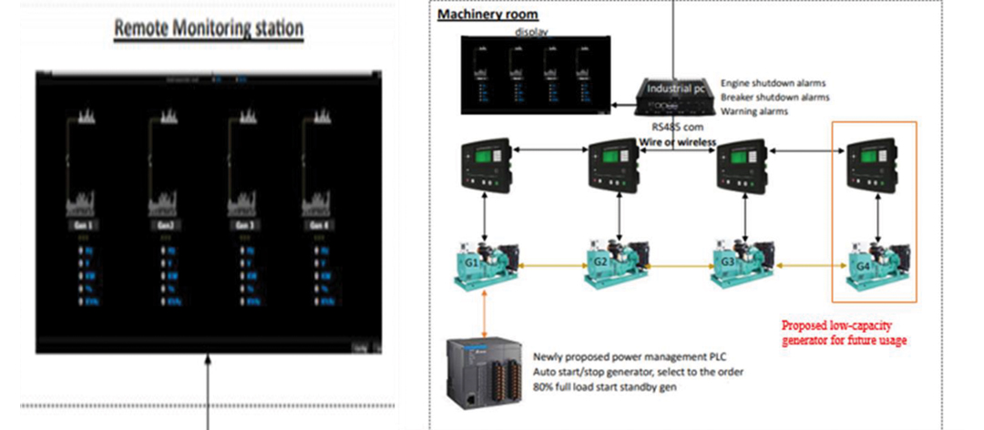 Proposed Generator control System is fully compliance with the existing generator controls and can be used to introduce additional features than start/stop, load share, remote monitoring and remote control in time to come.